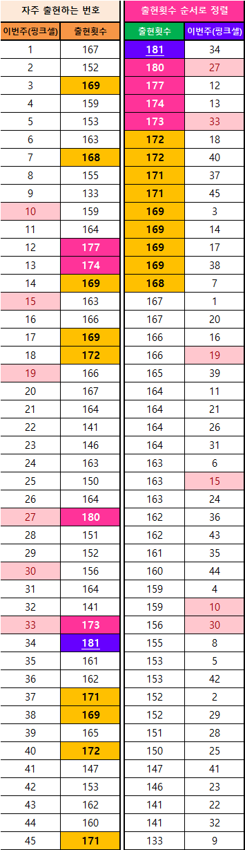 * 이번 회차의 당첨번호가 지난 회차 번호들에 얼마나, 나왔었는지(중복 검사)를 알고싶다면, 바로 아래의 글을 읽어보세요.