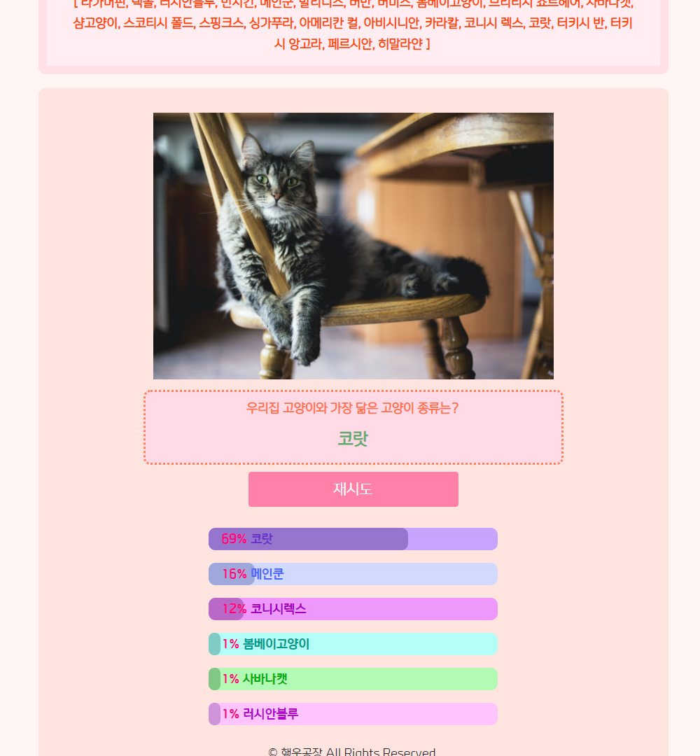 우리집 반려 고양이와 가장 닮은 고양이를 찾을 수 있는 사이트를 만들었습니다.